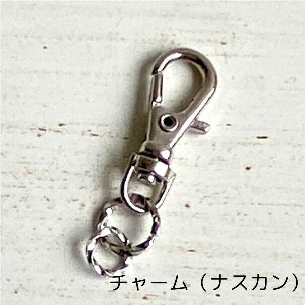 金具はチャーム(ナスカン)、カニカンから選べます。