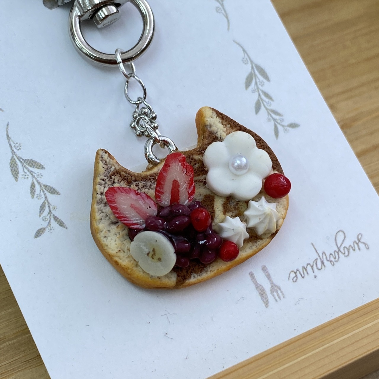 「あずきねこパン」はマーブルのねこパンにたっぷりのあずきをのせ、イチゴとホイップをトッピングしたフードデコです。
