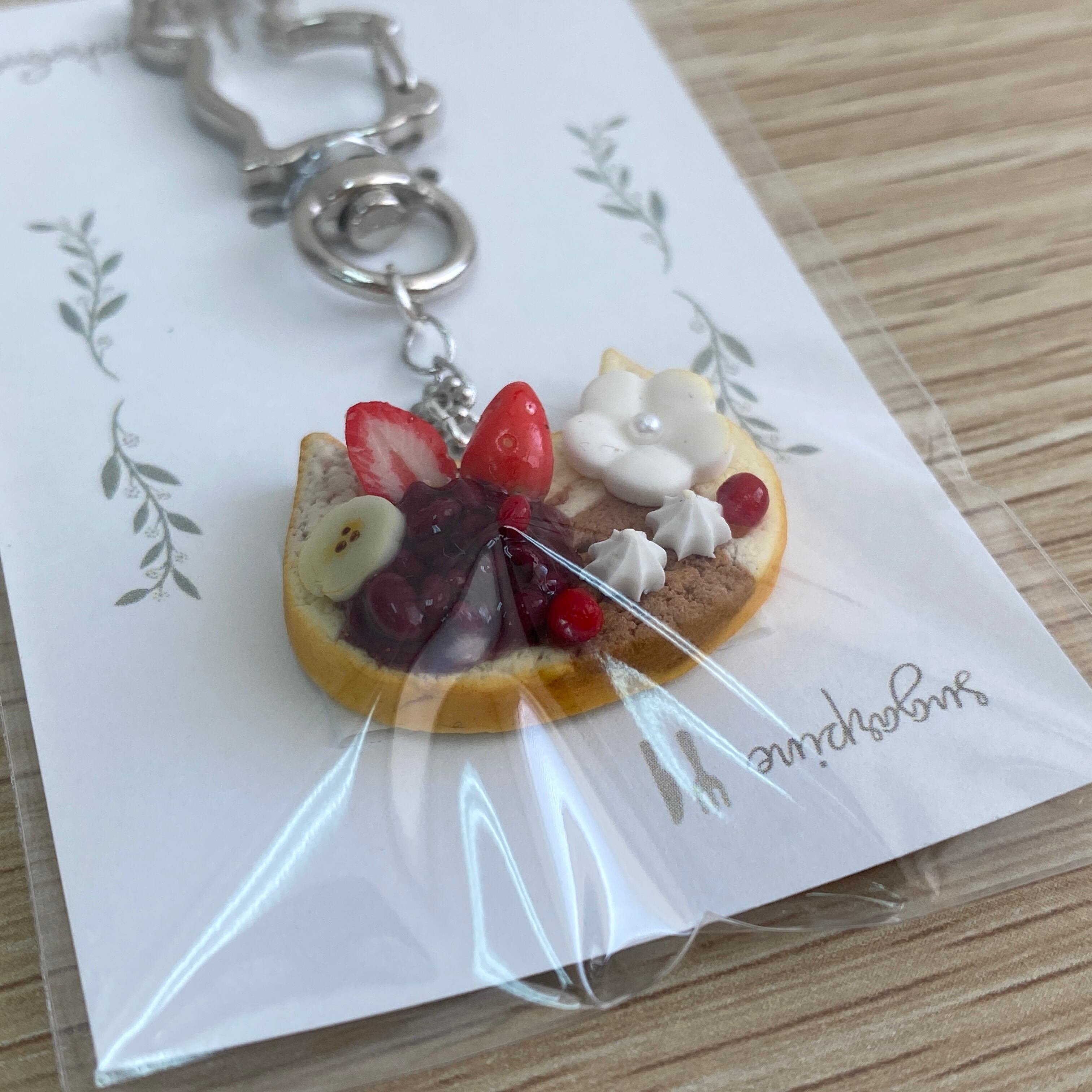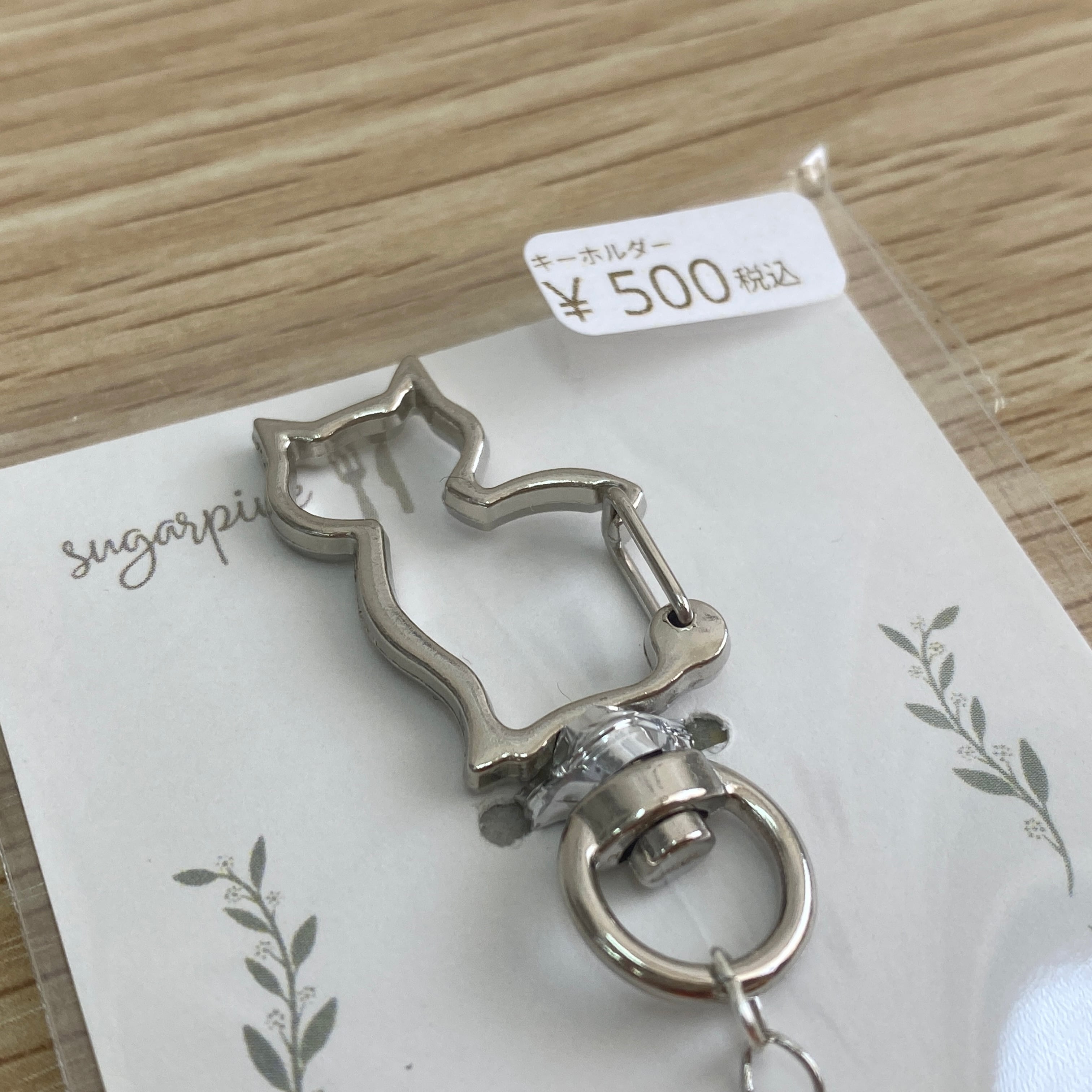 ネコ型の金具と組み合わせ、キーホルダーとして仕上げました。