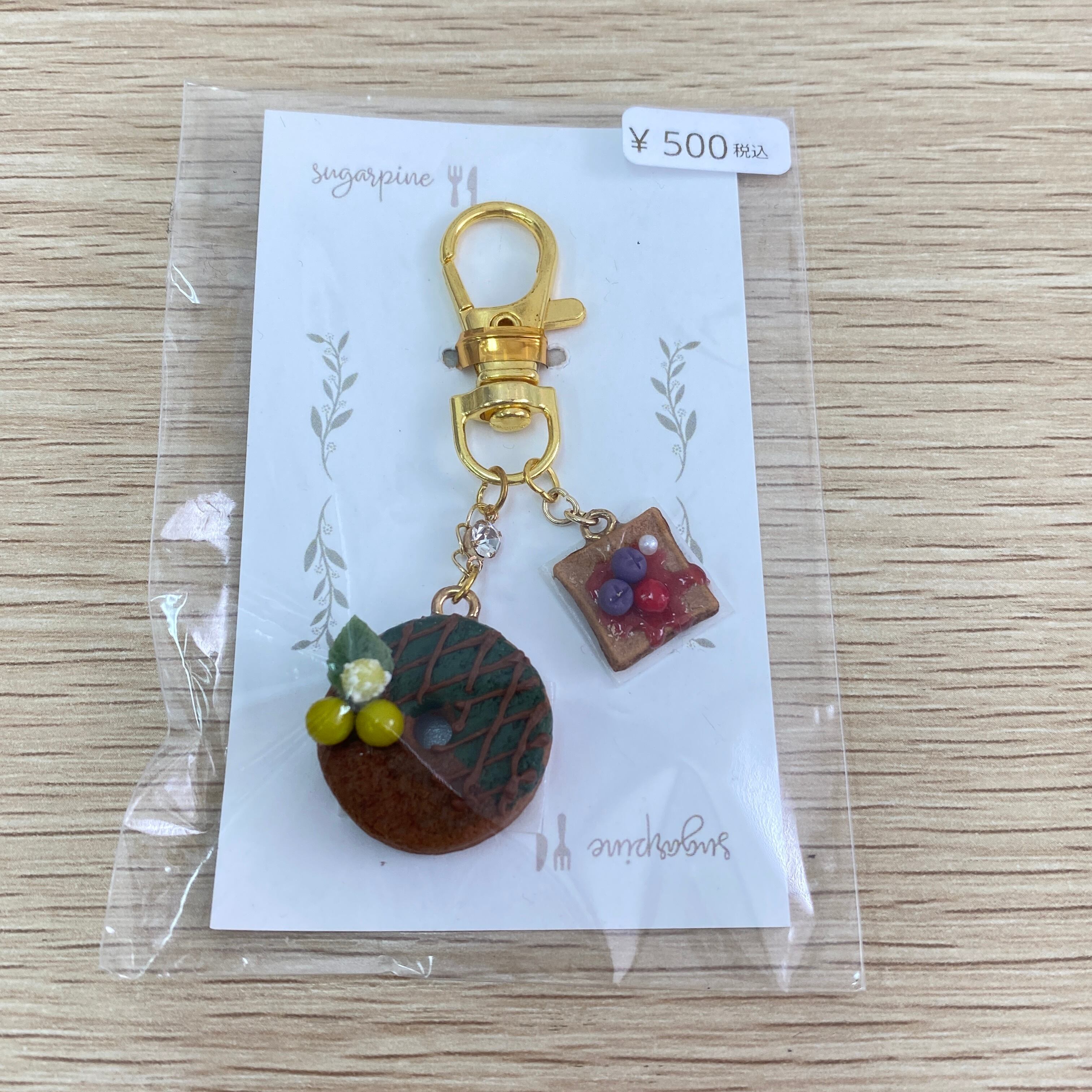 カニカン金具と組み合わせ、キーホルダーとして仕上げました。