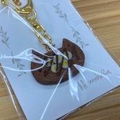 カニカン金具と組み合わせ、キーホルダーとして仕上げました。