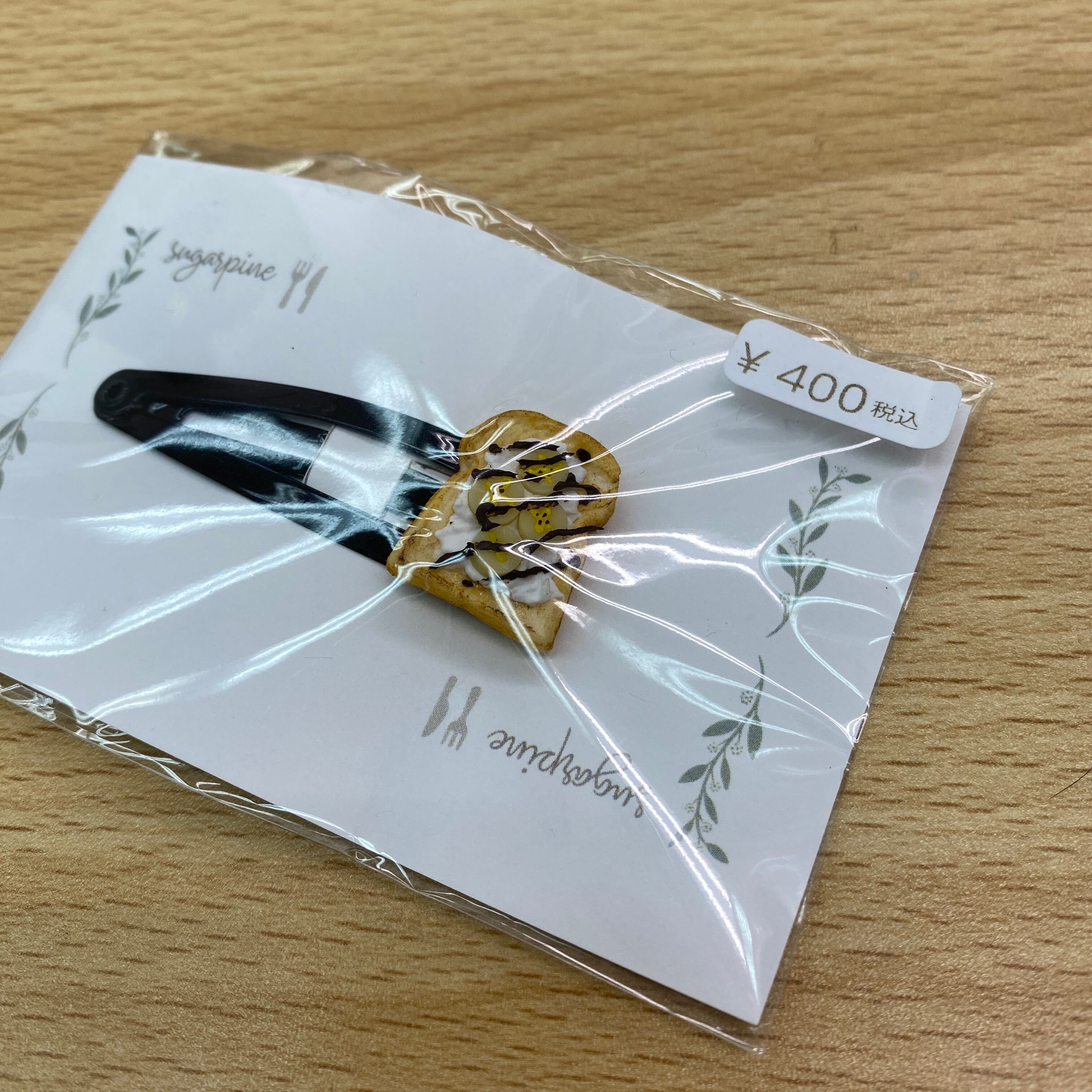パッチンピンと組み合わせ、髪留めとして仕上げました。