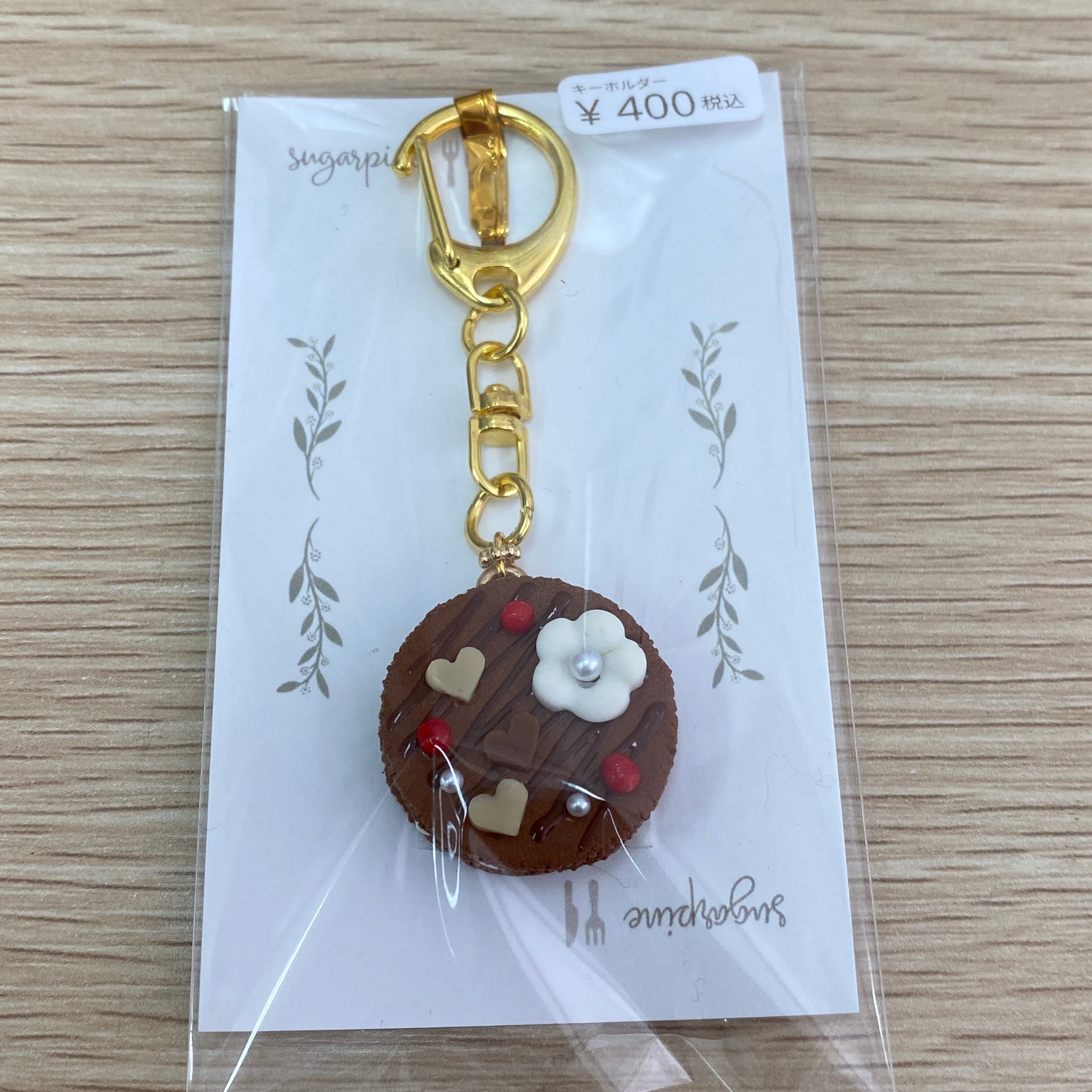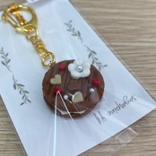 カニカン金具と組み合わせ、キーホルダーとして仕上げました。