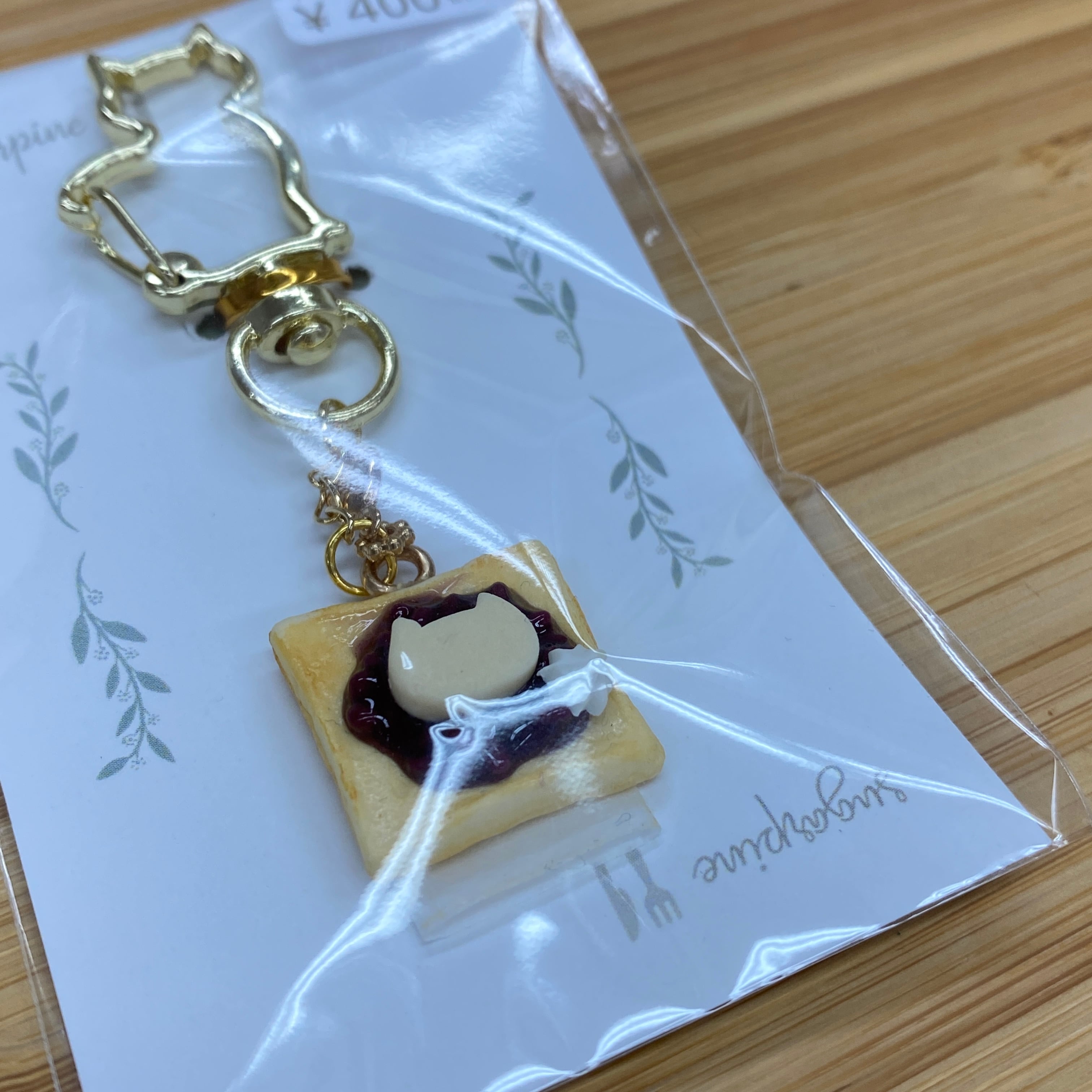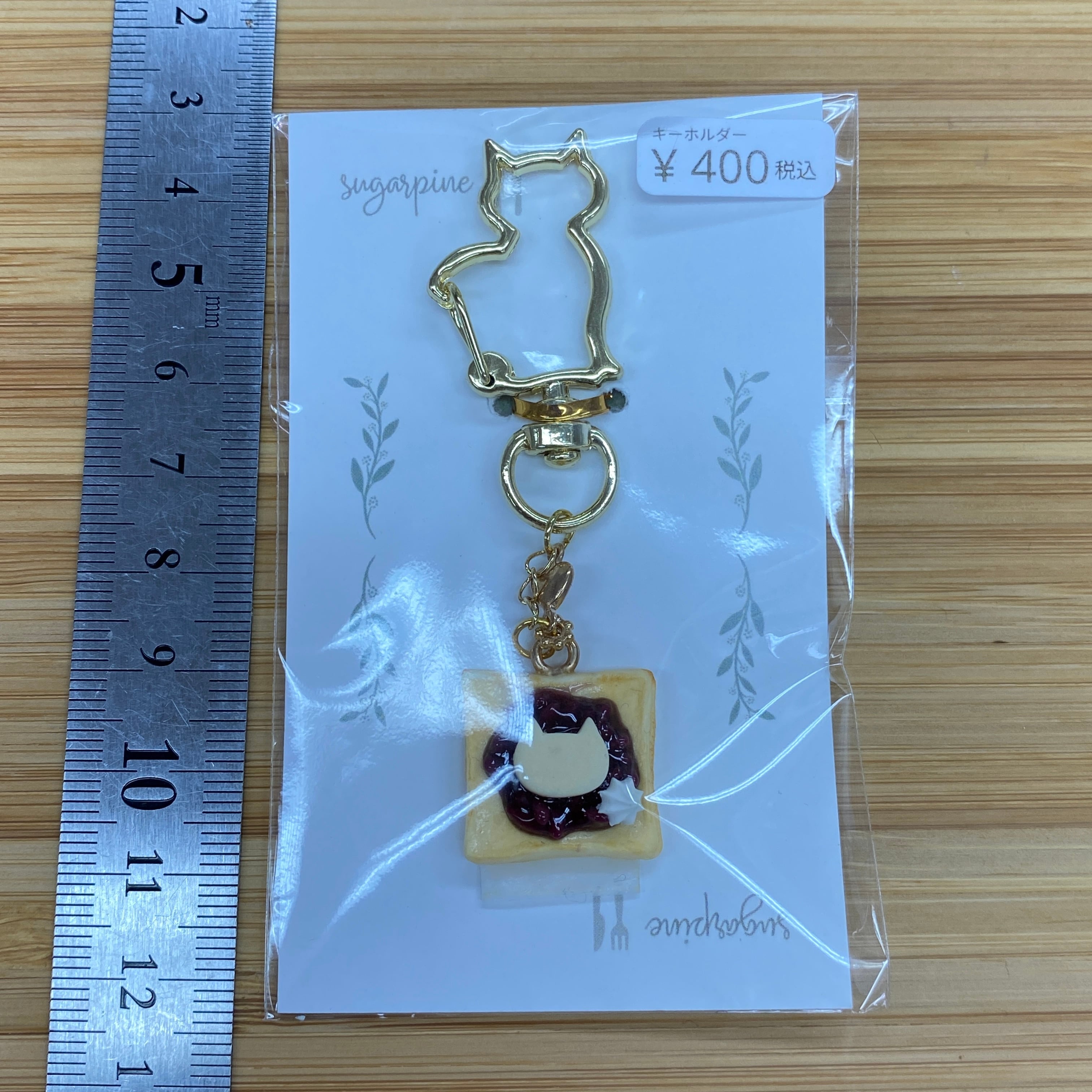 ニャンキー(ネコ型金具)を付けて、キーホルダーとして仕立てました。